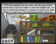 - Level 3: It's a nice booster you got there, but you know what's better than a sweet turbo? 2 sweet turbos! Hey, it's okay if you're not enough of a penguin to handle 15% more power! I'll just sell it to a better customer, that's all...