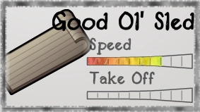 The Good Ol' Sled is rated 7.1/10 for Speed. It is a regular sled, so it does not have any take-off.