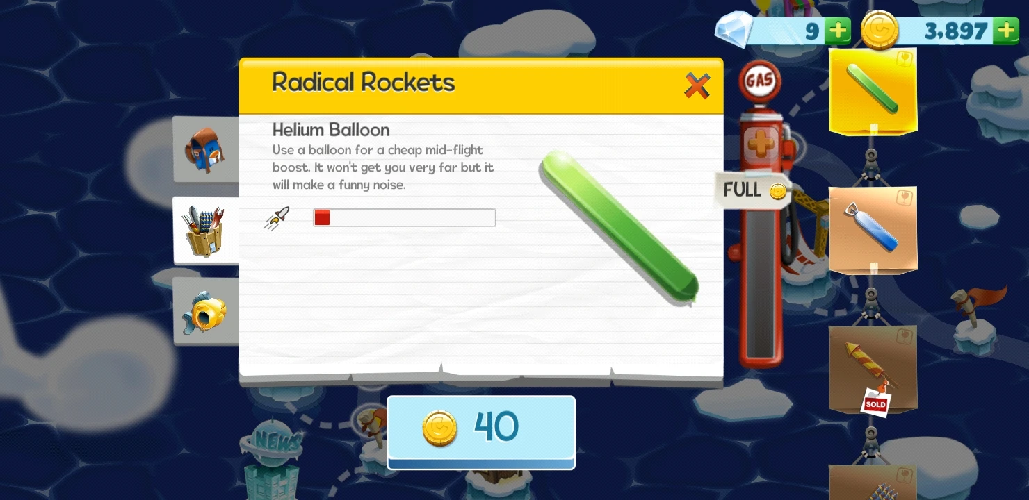 The Helium Balloon is a rocket in Learn 2 Fly Mobile. It costs 40 coins at Radical Rockets.