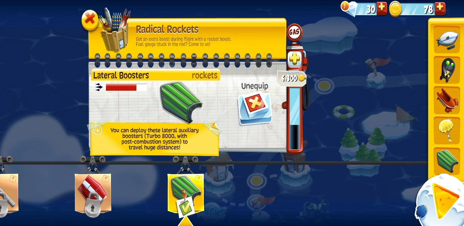 The Lateral Boosters is a rocket in Learn 2 Fly Mobile. It costs 8500 coins in the Radical Rockets shop.
