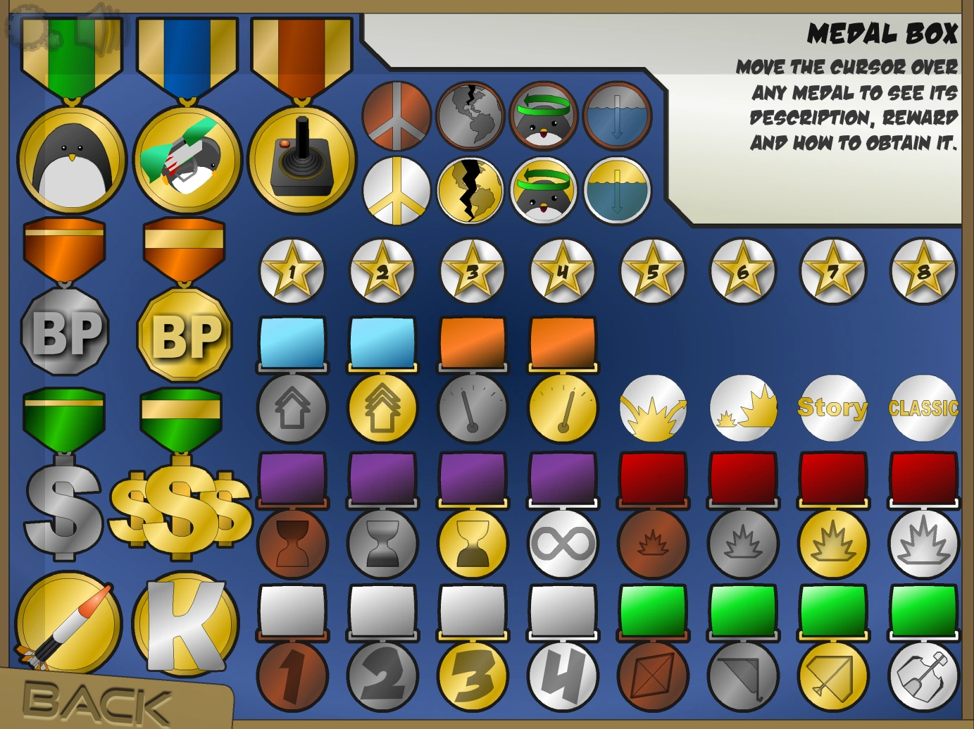 Click on the penguin's beak on the title screen to unlock this medal as well as Classic and Arcade modes | 100 BP |