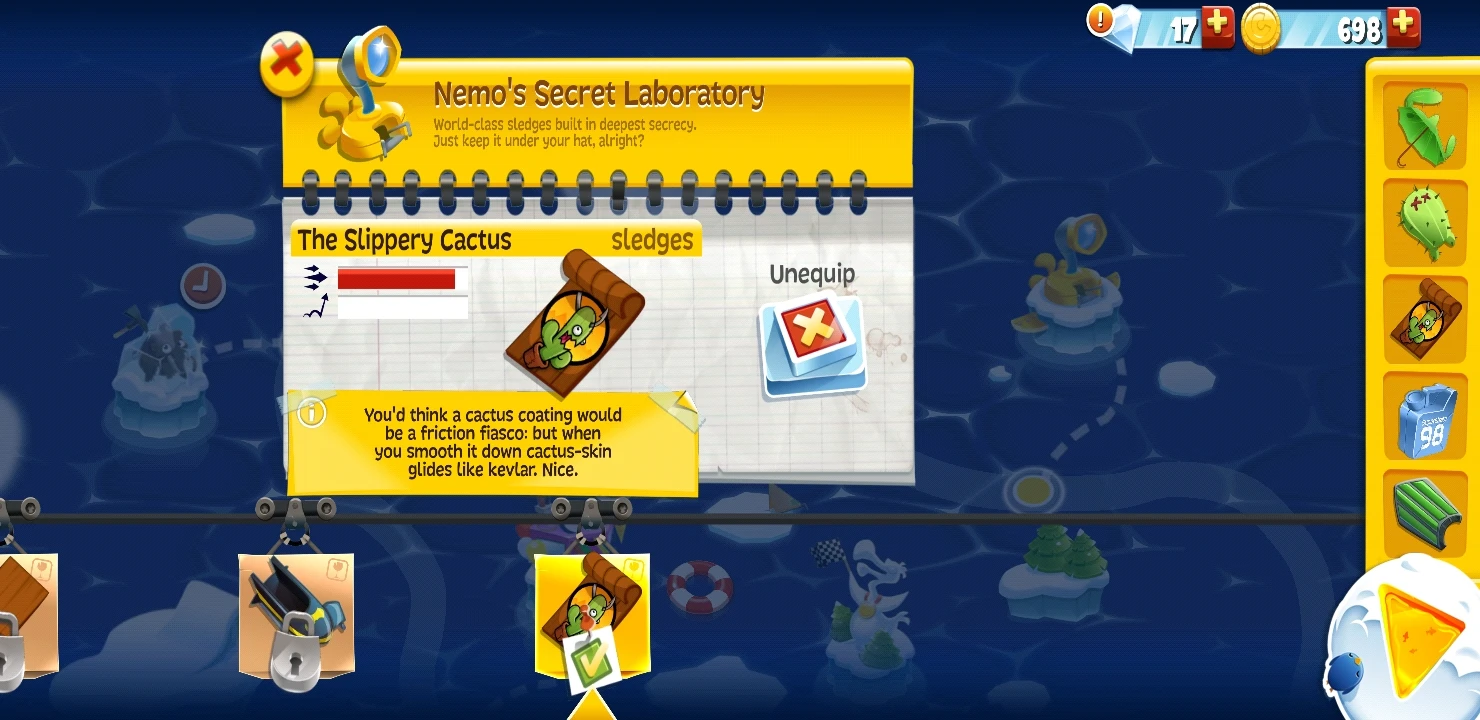 The Slippery Cactus is a sled in Learn 2 Fly Mobile. It is a regular sled, and costs 11500 coins at Nemo's Secret Laboratory.